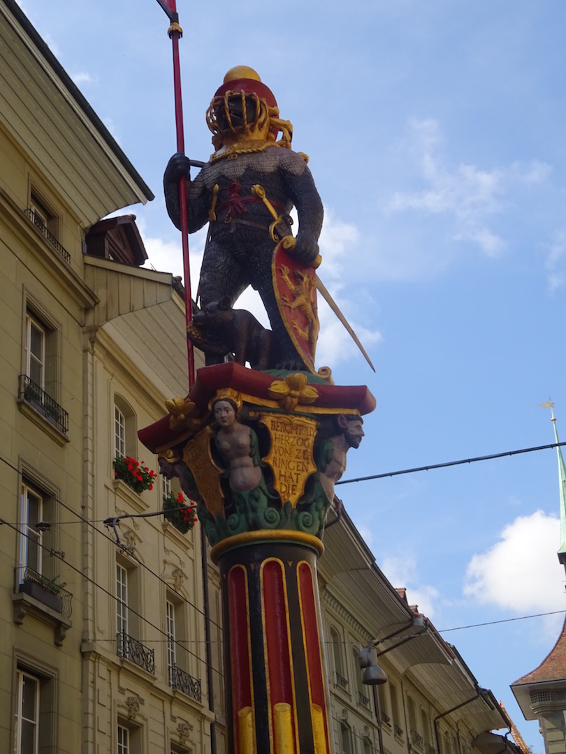 The Zahringerbrunnen dates back to 1535 and depicts a bear in full body armor. See next photo.