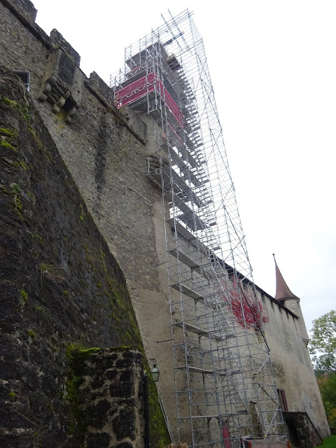 The view from Lucens Castle to the village below. Leaving the castle I'm confronted by one of the construction workers who says I'm trespassing. Thankfully it's not hard for me to play stupid and pretend I don't understand French--which for the most part I don't. The castle has a long history dating back to the 12th century and has had a myriad of owners. In the 1500's it was taken over by the Canton Bern (cantons are similar to states in the US) and held it for several hundred years--the bear is their symbol.